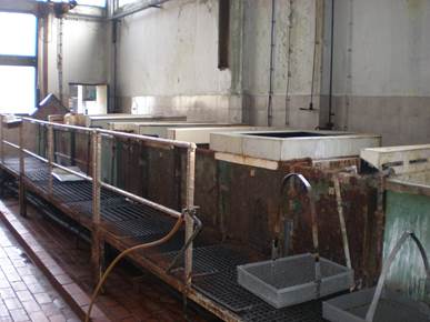 The total volume of the electrolyte in alkaline oxidation is 400l. The process of alkaline oxidation, ie. burnishing with subsequent processing (anti-corrosive oiling or greasing) is used to protect parts from corrosion during storage indoors. The layers of oxide obtained by alkaline oxidation are porous, and provide little protection if applied in a humidified atmosphere.